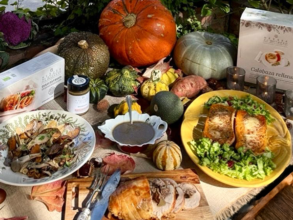 Nuestro Rulo de Pollo Ecológico relleno y jugoso, con su toque dulce y salado, se une a la Calabaza Rellena de quinoa y verduras y un tarro de Salsa de Setas, cremosa y reconfortante, para formar el dúo más sabroso de la temporada.