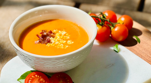 - Cortar la panceta en tiras de 1x2 cm aproximadamente, calentar una sartén con media cucharada de aceite de oliva y saltear la panceta hasta que se dore ligeramente. Sacar la panceta y reservar