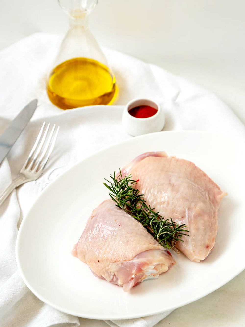 - Quitar la piel y cortar el pollo en trozos medianos y condimentarlos con los dientes de ajo machacados, la sal y la pimienta negra molida al gusto.
