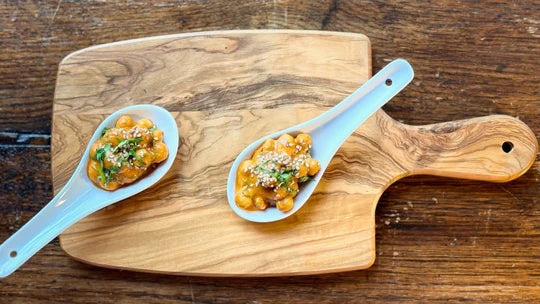 Para prepararlo, en primer lugar, se dejan en remojo los garbanzos el día anterior. Al día siguiente, se cuecen los garbanzos y se asa el pimiento, la cebolla y el ajo. Una vez cocidos los garbanzos, se les añade el resto de ingredientes y se tritura. Cuando ya tenemos nuestro hummus en su punto, lo envasamos en botes de cristal y lo pasamos por un proceso, en el que se le aplica calor y presión al producto, en un autoclave. Gracias a este último paso conseguimos que el producto tenga caducidad de varios días, sin utilizar ningún tipo de aditivo ni conservante.