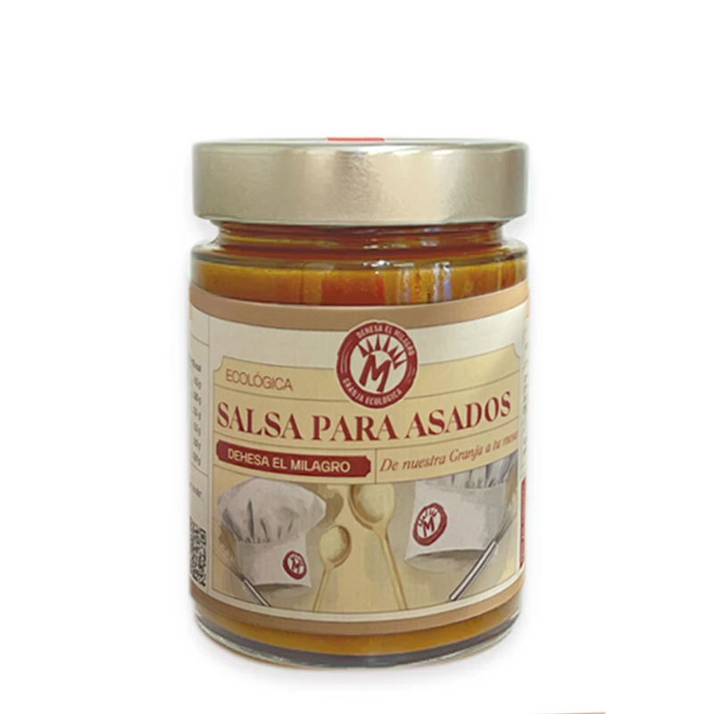 La salsa para asados ecológica de Dehesa el Milagro, se elabora de la forma más casera, utilizando ingredientes frescos y dejando cocer a fuego lento, como se cocinaba tradicionalmente. Para su elaboración, se prepara una base de cebolla y ajo pochado, con un poco de zanahoria, nabo y un toque de seta shiitake y tomillo, que se deja cocer con caldo de pollo hecho con los propios huesos del pollo ecológico de nuestra granja.